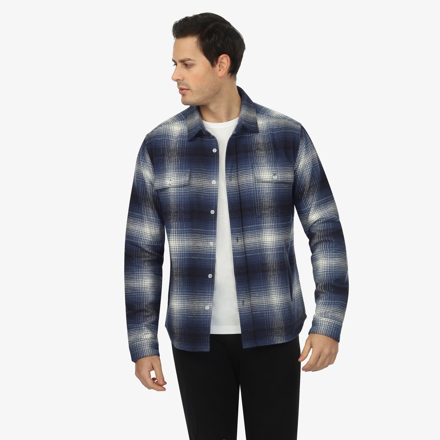 Your Fall look just got an upgrade. Crafted from 100% certified organic cotton, this shacket keeps you stylish and warm. Pair it with your favorite chinos or jeans, and let the concealed collar button enhance your look. Perfectly blending casual comfort with sustainable style for the season.